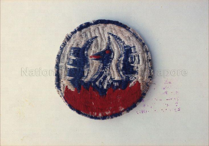 FORMATION BADGE/INSIGNIA OF SUPREME ALLIED COMMAND SOUTH EAST ASIA (SACSEA). PHOENIX ARISING FROM FLAMES, SYMBOLISING ALLIED STRENGTH EMERGING FROM ASHES OF JAPANESE CONTROL IN CHINA, BURMA, MALAYA, EAST INDIES AND SOUTH PACIFIC. DATED 1940S.