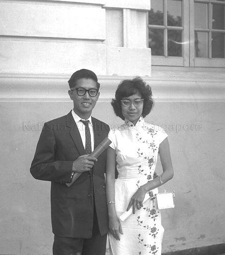 ALAN WONG YUI KEONG GRADUATED WITH A DIPLOMA IN TELECOMMUNICATIONS ENGINEERING AT THE SINGAPORE POLYTECHNIC'S FIRST CONVOCATION IN VICTORIA THEATRE. WITH HIM IS HIS 22-YEAR OLD WIFE IRENE