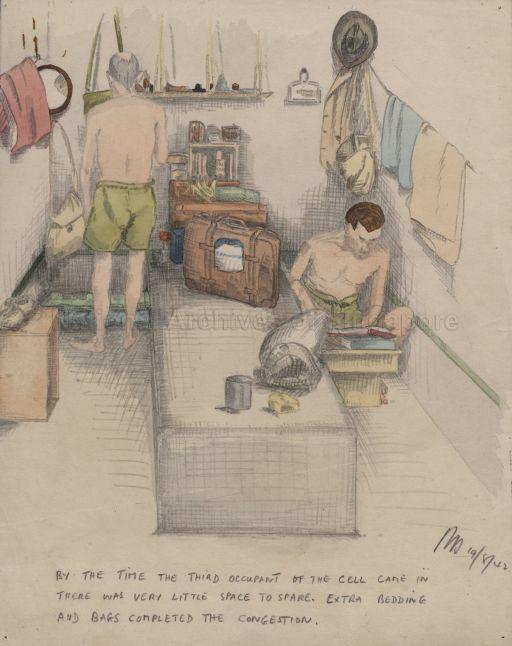 Mr William Haxworth was working as the Chief Investigator of the War Risks Insurance Department of the Singapore Treasury when the war broke out. He was subsequently interned by the Japanese, first in Changi Prison and later transferred to Sime Road Internment Camp. He secretly drew over 300 small paintings and sketches that depicted the harsh, crowded and unhygienic living conditions in these POW camps.