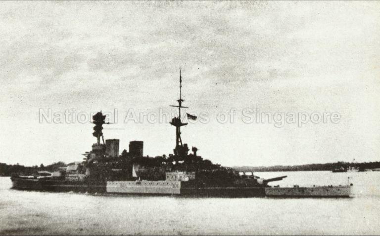 THE BATTLESHIP HMS REPULSE ARRIVING IN SINGAPORE.