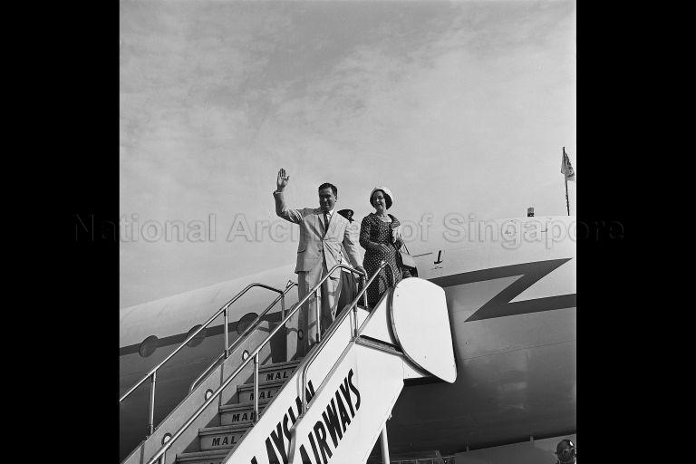 BRITISH SECRETARY OF STATE FOR DEFENCE DENIS HEALEY LEAVING SINGAPORE WITH HIS WIFE AFTER DISCUSSIONS ON IMPLICATIONS AND DIRECTIONS OF BRITAIN'S NEW DEFENCE POLICY