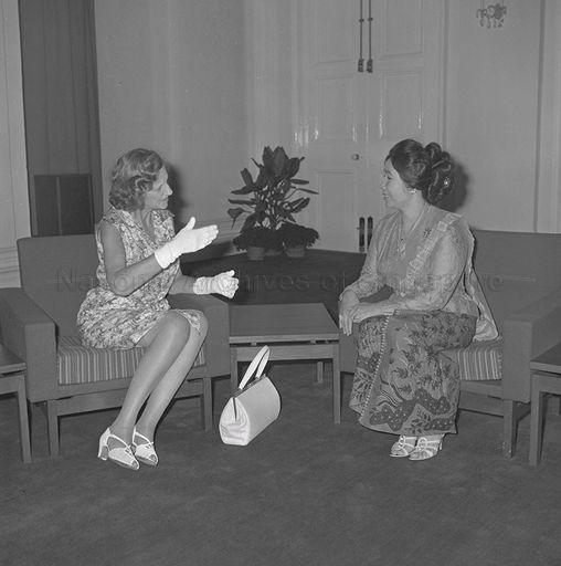 LADY DOUGLAS-HOME (LEFT) WHO IS WIFE OF BRITAIN'S FORMER PRIME MINISTER SIR ALEC DOUGLAS-HOME MEETING FIRST LADY PUAN NOOR AISHAH AT THE ISTANA NEGARA