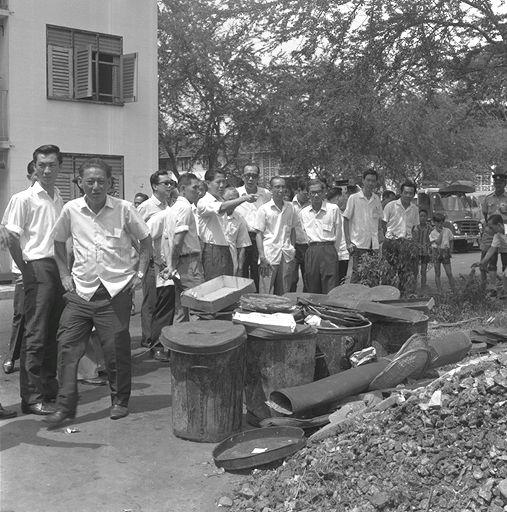 MINISTER FOR CULTURE JEK YEUN THONG (WITH OUTSTRETCHED HAND) CARRIED OUT A SPOT CHECK IN HIS QUEENSTOWN CONSTITUENCY DURING THE KEEP SINGAPORE CLEAN CAMPAIGN