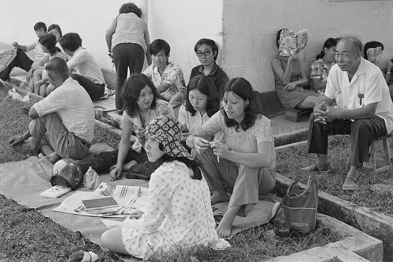 EMPLOYEES OF SCICLENE, A DRY CLEANING FIRM, SPENDING THEIR TIME TALKING AND READING,AS THE STRIKE MOVES INTO ITS FIFTH DAY, AT DELTA ROAD OVER DISPUTE OF COMPANY HIRING THIRTY NEW WORKERS WHILE BOTH PARTIES WERE NEGOTIATING IMPLEMENTATION OF $25 INTERIM WAGE SUPPLEMENT AWARDED BY NATIONAL WAGES COUNCIL