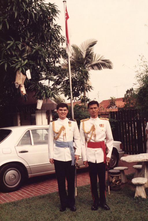 MAJOR (MAJ) LEE WAH SENG (LEFT) AND MAJOR (MAJ) ALFRED GOH (RIGHT), AIDES-DE-CAMP TO THE PRESIDENT