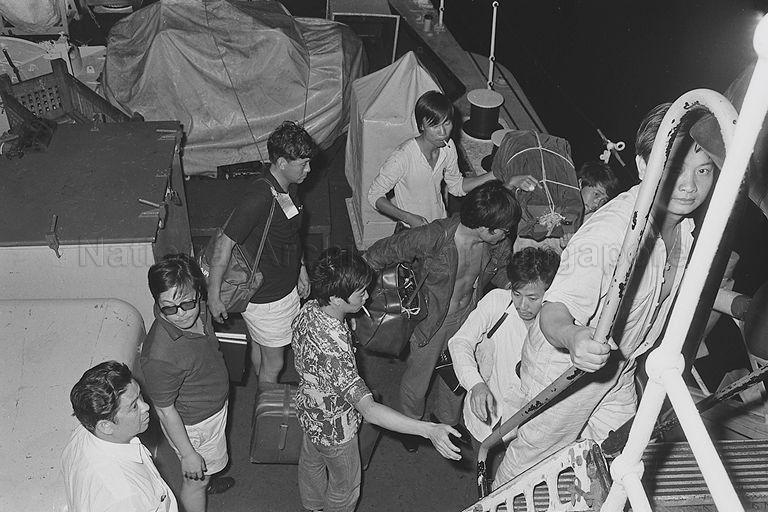 BRITISH NAVY FRIGATE H.M.S RHYL SAILING INTO ANZUK TRIPARTITE FORCE'S NAVAL BASIN WITH ENTIRE 36 MEMBER CREW OF PANAMA REGISTERED FREIGHTER, THE CARNATION, WHICH WAS CRIPPLED IN A COLLISON WITH A CYPRIOT TANKER, THE ANSON IN MALACCA STRAITS