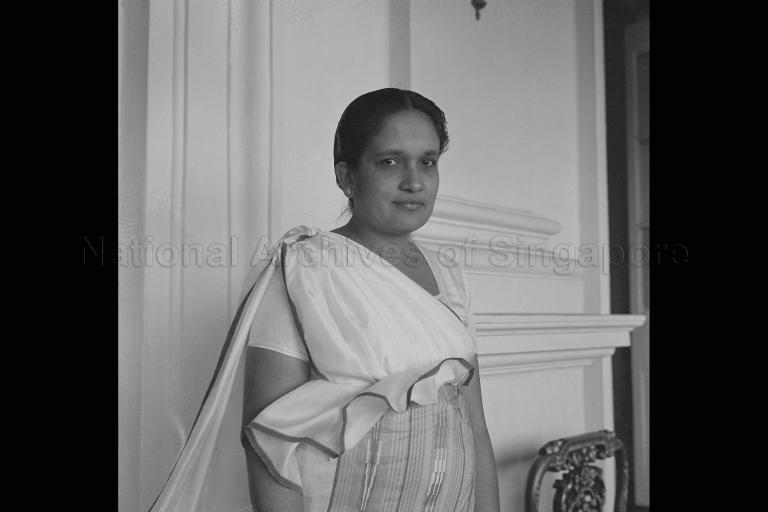 WIFE OF CEYLON PRIME MINISTER SOLOMON BANDARANAIKE, MRS SRIMA BANDARANAIKE ARRIVED ABOARD WILLEM RUYS IN SINGAPORE FOR MERDEKA CELEBRATIONS AT GOVERNMENT HOUSE