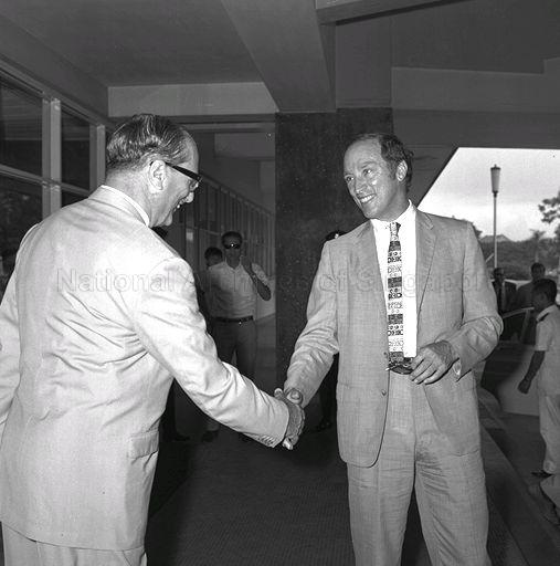 CANADIAN PRIME MINISTER PIERRE TRUDEAU (RIGHT) AT SINGAPORE POLYTECHNIC FOR A PRESS CONFERENCE DUIRNG HIS TWO-DAY STATE VISIT TO SINGAPORE