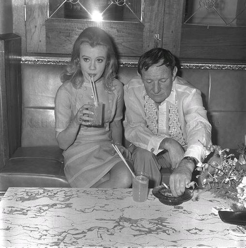 ACTOR TREVOR HOWARD AND ACTRESS HAYLEY MILLS AT RAFFLES HOTEL. THEY ARE IN SINGAPORE FOR THE FILMING OF 'PRETTY POLLY'