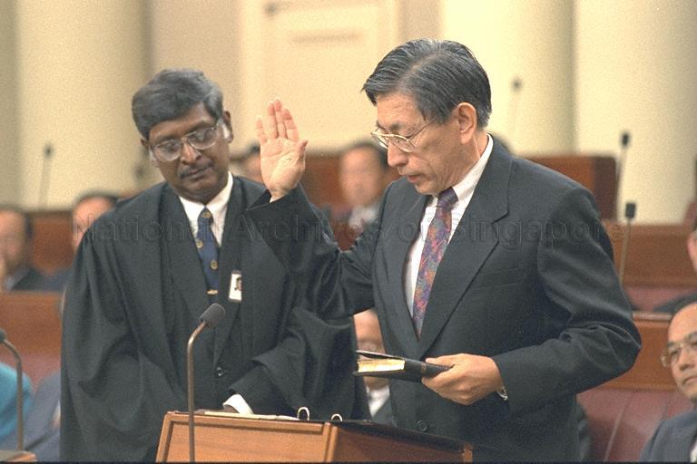 SINGAPORE PEOPLE'S PARTY (SPP) MEMBER OF PARLIAMENT (MP) FOR POTONG PASIR CHIAM SEE TONG TAKING OATH AS MP AT SWEARING-IN CEREMONY DURING FIRST SESSION OF NINTH PARLIAMENT AT PARLIAMENT HOUSE