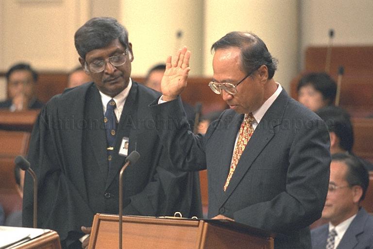 MEMBER OF PARLIAMENT (MP) FOR AYER RAJAH DR TAN CHENG BOCK TAKING OATH AS MP AT SWEARING-IN CEREMONY DURING FIRST SESSION OF NINTH PARLIAMENT AT PARLIAMENT HOUSE