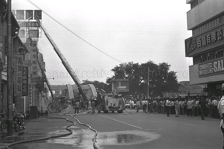 FIRE DAMAGED THREE TEXTILE SHOPS IN BUSY NORTH BRIDGE ROAD AT LUNCH TIME. THE FIRE IS BELIEVED TO HAVE BEEN CAUSED BY A SHORT CIRCUIT. SIX FIRE-ENGINES SPENT OVER AN HOUR FIGHTING THE BLAZE