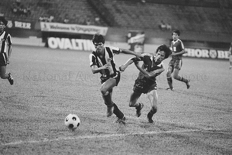 CHINA'S GU GUANGMING (FOREGROUND, RIGHT) IN A 2ND MERLION CUP FOOTBALL MATCH BETWEEN CHINA AND THAILAND AS CHINA WON 3-0 AT NATIONAL STADIUM