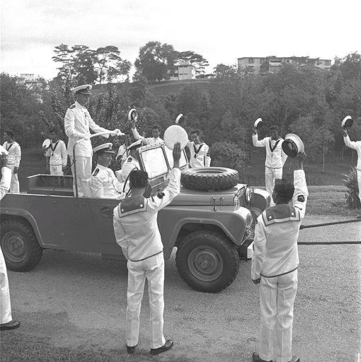 AT K D MALAYA, THE ROYAL MALAYSIAN NAVAL BASE AT WOODLANDS, 650 OFFICERS AND RATINGS GAVE A ROUSING FAREWELL TO CAPTAIN J M FORBES, NAVAL OFFICER-IN-CHARGE WHO IS LEAVING HIS POST
