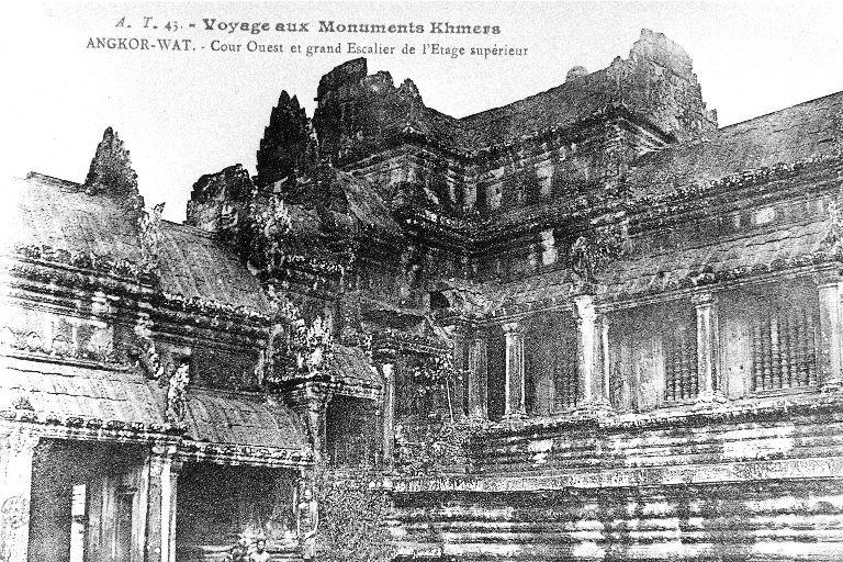 TRAVELS AT THE MONUMENTS OF KHMERS. ANGKOR-WAT - WESTERN COURTYARD AND THE GRAND STAIRS TO THE UPPER STOREYS, C1900S