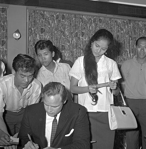 HOLLYWOOD MOST CELEBRATED ACTOR MARLON BRANDO (FRONT) ARRIVED IN SINGAPORE