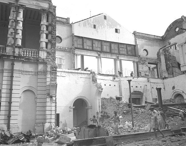 THE HISTORIC VICTORIA THEATRE IN EMPRESS PLACE HAS LOST ITS ROOF AND THE STAGE IS TUMBLING DOWN. IT WILL BE DEMOLISHED AND A NEW THEATRE WITH A STAGE 41-FEET WIDE WILL BE BUILT TO REPLACE IT