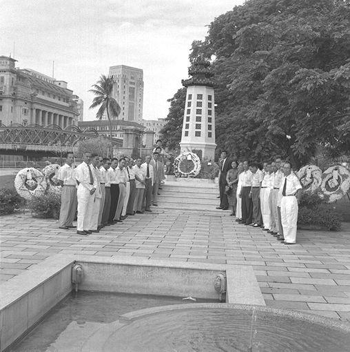 LIM LEONG GEOK, HIS MOTHER AND SISTER LAID WREATHS AT MAJOR-GENERAL LIM BO SENG'S MEMORIAL PAGODA AT THE ESPLANADE ON HIS 15TH DEATH ANNIVERSARY
