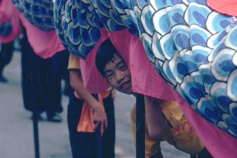 SERIES OF PICTURES OF A DRAGON DANCE IN CHINATOWN
