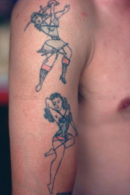 TATTOOS WERE CROSSED OUT TO INDICATE THAT THE PERSON IS NO LONGER A MEMBER OF ANY SECRET SOCIETY AND THEREFORE SHOULD NOT BE ARRESTED UNDER THE INTERNAL SECURITY ACT