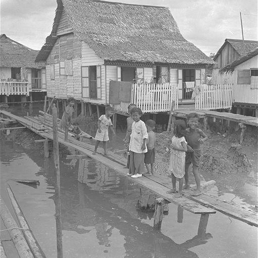 MALAY CHILDREN PLAYING AT A KAMPONG