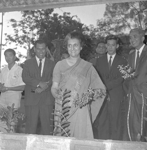 INDIAN PRIME MINISTER MRS INDIRA GANDHI VISITING THE BOTANICAL GARDENS DURING HER SHORT VISIT TO SINGAPORE.