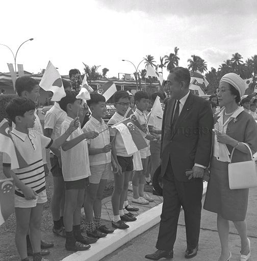 JAPAN'S PRIME MINISTER EISAKU SATO AND MRS HIROKO SATO LEAVING SINGAPORE AFTER A STATE VISIT TO THE REPUBLIC.