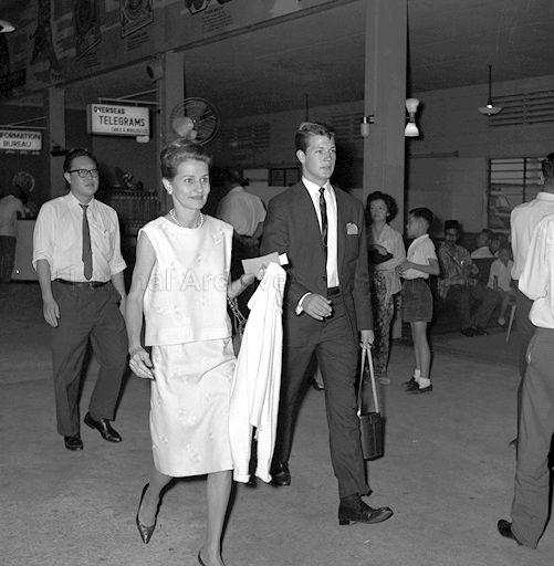 HOLLYWOOD ACTOR WILLIAM HOLDEN'S WIFE BRENDA AND SON SCOTT IN TRANSIT AT SINGAPORE AIRPORT BEFORE LEAVING FOR BOMBAY