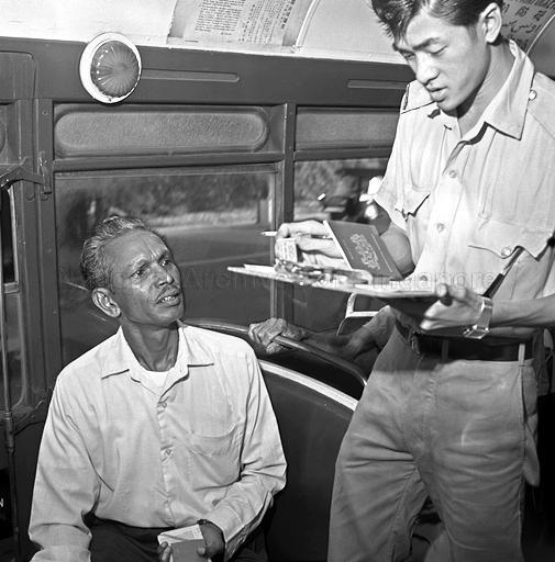 A SINGAPORE IMMIGRATION OFFICER CHECKING FOR VALID TRAVEL DOCUMENTS OF THIS CAUSEWAY COMMUTER AT WOODLANDS. SINGAPOREANS LEAVING WOODLANDS AND WISHING TO RETURN MUST CARRY RESTRICTED PASSPORTS OR THE INTERNATIONAL DOCUMENT