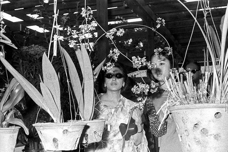 KING MAHENDRA AND QUEEN RATNA OF NEPAL ARE HERE ON A FIVE-DAY UNOFFICIAL VISIT TO SINGAPORE. PICTURE SHOWS QUEEN RATNA (LEFT) VISITING THE NURSERIES AT BOTANIC GARDENS