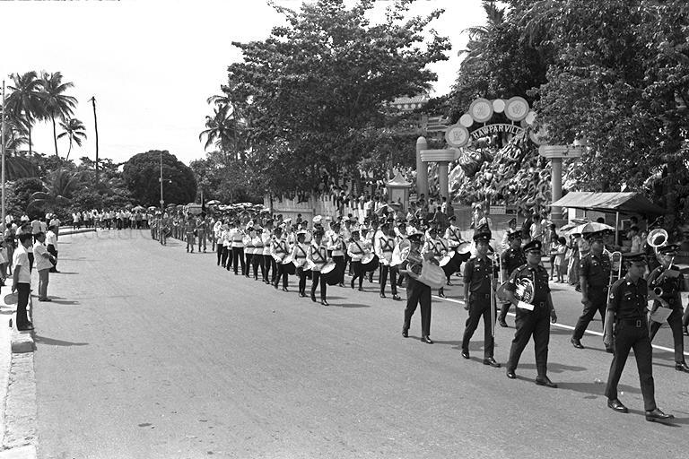 FUNERAL PROCESSION OF THE LATE MILLIONAIRE AND PHILANTHROPIST DATO (DR) AW CHENG CHYE, 48, WHO DIED OF BRAIN HAEMORRHAGE 11 DAYS AGO WHILE ON HOLIDAY IN SANTIAGO, CHILE. HE WAS BURIED THIS AFTERNOON ACCORDING TO BUDDHIST RITES AT THE HOKKIEN CEMETERY IN WHITLEY ROAD. THE LATE PROMINANT BANKER AND BUSINESSMAN WAS ORIGINALLY TO HAVE BEEN LAID TO REST AT THE FONG YONG THAI CEMETERY IN HOLLAND ROAD, NOW PENDING GOVERNMENT DEVELOPMENT, WHERE HIS LATE FATHER AW BOON PAR AND HIS ANCESTOR WERE BURIED. MORE THAN 3,000 PEOPLE INCLUDING GOVERNMENT OFFICIALS, BUSINESS LEADERS, FRIENDS, RELATIVES, STAFF AND MEMBERS OF VARIOUS WELFARE ORGANISATIONS, ATTENDED THE FUNERAL