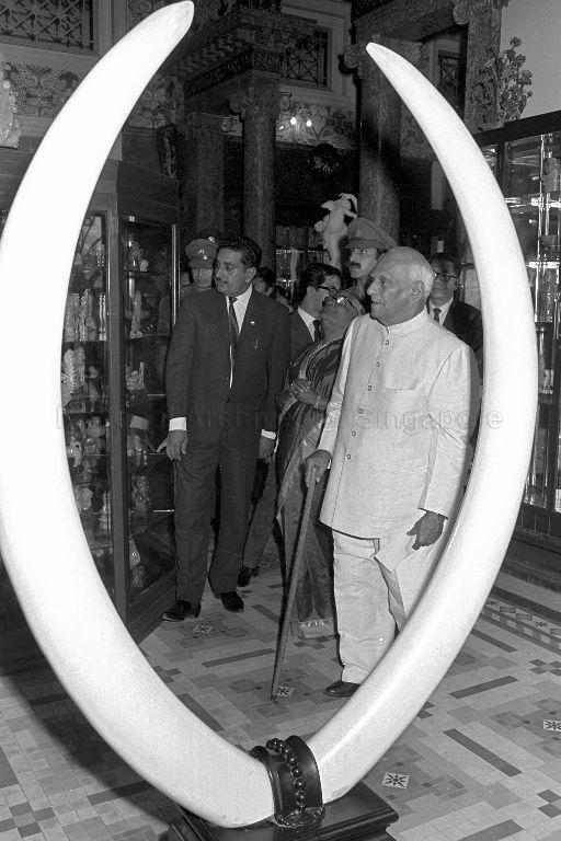 PRESIDENT V V GIRI (RIGHT) OF INDIA WHO IS IN SINGAPORE ON A STATE VISIT WITH HIS WIFE AND ENTOURAGE OF 24 VISITS THE JADE HOUSE