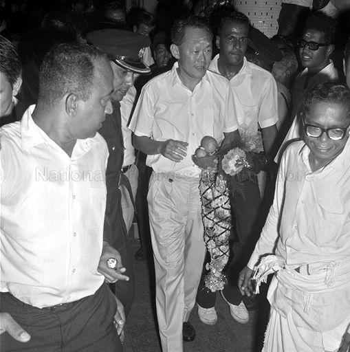 PRIME MINISTER LEE KUAN YEW VISITS THE CHETTIARS' TEMPLE AT TANK ROAD DURING THE THAIPUSAM FESTIVAL