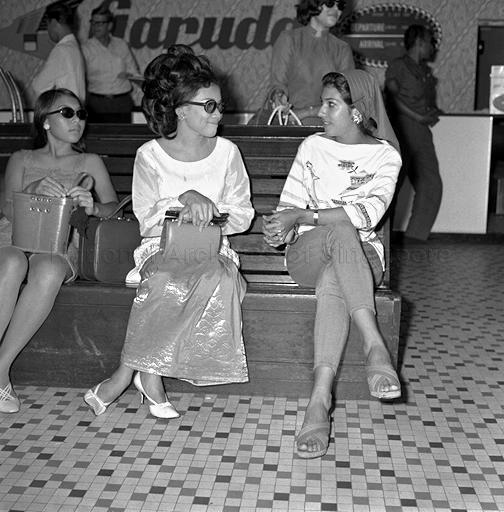 MISS SINGAPORE 1968 YASMIN SAIF (RIGHT) CAUSED A STIR AT PAYA LEBAR AIRPORT WHEN SHE LEFT FOR HONOLULU - FIRST STOP ON HER JOURNEY TO MIAMI BEACH TO TAKE PART IN THE MISS UNIVERSE CONTEST. YASMIN, 19, A DANCER, WAS CLAD IN A PAIR OF SKIN-TIGHT JEANS, T-SHIRT, HIGH-HEELED SANDALS AND WITH HER LONG PLAITED HAIR COVERED BY A GREEN SCARF. FLYING WITH HER WAS MISS MALAYSIA, MAZNAH BTE MOHAMMED ALI, WHO IS A 20-YEAR OLD PRIVATE SECRETARY WORKING IN KUALA LUMPUR, WAS DRESSED IN A WHITE AND RED SARONG KEBAYA