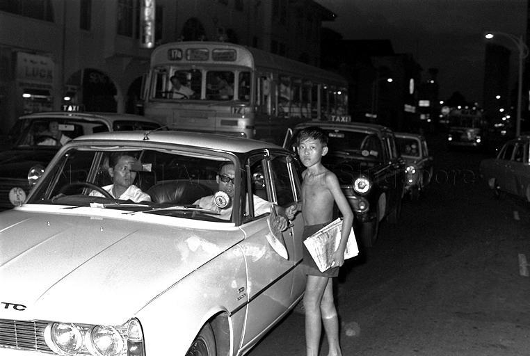 SOME 300 'MA PEW POH' (NEWSPAPER) VENDORS PLAY WITH DEATH EVERY WEEK-END. THEY RUN IN BETWEEN CARS - OFTEN TAKING GREAT RISKS - SELLING CHINESE NEWSPAPERS WITH THE DAY'S RACE RESULTS