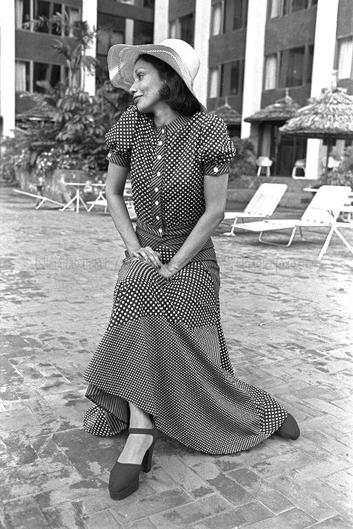 FAITH IBRAHIM (RIGHT), THE SINGAPORE-BORN MODEL WHO HAS MADE IT TO THE TOP OF THE EUROPEAN MODELLING SCENE. SHE IS BEETTER KNOWN AS ANAK. TOGETHER WITH HER THREE YOUNGER SISTERS THEY ARE PREPARING FOR SEPARATE SCENE '72, A LUNCHTIME FASHION SHOW OF IMPORTED AND LOCALLY MADE CLOTHES TO BE HELD AT THE HYATT HOTEL ISLAND BALLROOM. PICTURE SHOWS ONE OF THE OUTFITS THAT ANAK WILL BE MODELLING AT THE FASHION SHOW. IT IS A BROWN ANKLE-LENGTH DRESS WITH WHITE STRIPES AND POLKA DOTS BY MARY QUANT. IT IS OF COTTON AND THE SKIRT IS GORED, THE SHORT PUFF SLEEVES ARE CUFFED AND SMALL BUTTONS TRIM THE FRONT