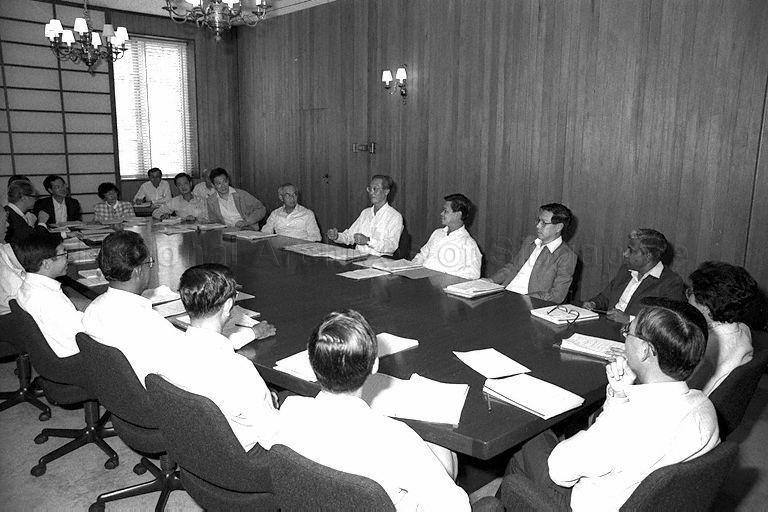PRIME MINISTER GOH CHOK TONG CHAIRING HIS FIRST CABINET MEETING AT CABINET ROOM, PRIME MINISTER'S OFFICE