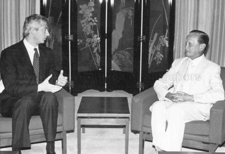 CROWN PRINCE HANS ADAM AND PRINCESS MARIE-AGLAE OF LIECHTENSTEIN PAYING COURTESY CALL ON PRESIDENT WEE KIM WEE AND MRS WEE