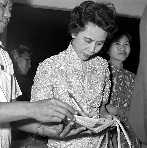 HONG KONG'S TOP OPERA SINGER MISS YAM KIM FEI OBLIGING ONE OF HER TEENAGE FANS WITH HER AUTOGRAPH AT THE NEW ERA EXPOSITION IN BEACH ROAD