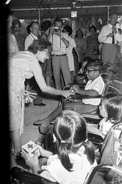 LADY GOODE, WIFE OF FORMER GOVERNOR OF SINGAPORE SIR WILLIAM GOODE VISITS RED CROSS CHILDREN'S HOME IN NICOLL DRIVE. SHE IS ACCOMPANYING HER HUSBAND SIR WILLIAM GOODE WHO IS IN SINGAPORE AS GUEST OF THE GOVERNMENT IN CONJUNCTION WITH THE NATIONAL DAY CELEBRATIONS