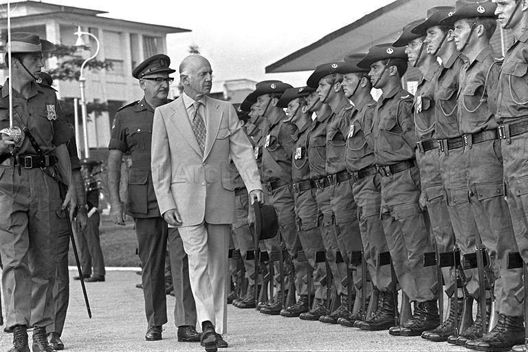 AUSTRALIAN PRIME MINISTER (PM) WILLIAM MCMAHON INSPECTING THE GUARD-OF-HONOUR WHILE VISITING THE AUSTRALIAN NEW ZEALAND UNITED KINGDOM (ANZUK) FORCE IN SEMBAWANG. THE AUSTRALIAN PM IS IN SINGAPORE FOR TOP LEVEL CONSULTATIONS ON BILATERAL AND REGIONAL AFFAIRS