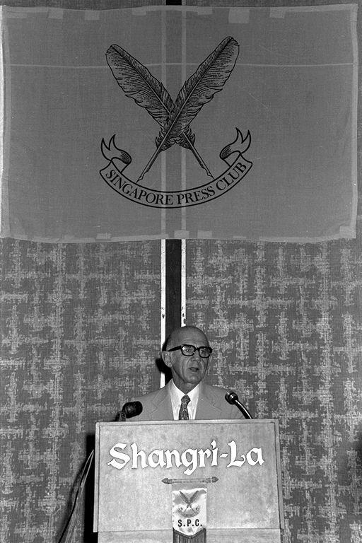 AUSTRALIAN PRIME MINISTER (PM) WILLIAM MCMAHON SPEAKING AT THE SINGAPORE PRESS CLUB LUNCHEON AT SHANGRI-LA HOTEL. THE AUSTRALIAN PM IS IN SINGAPORE FOR TOP LEVEL CONSULTATIONS ON BILATERAL AND REGIONAL AFFAIRS