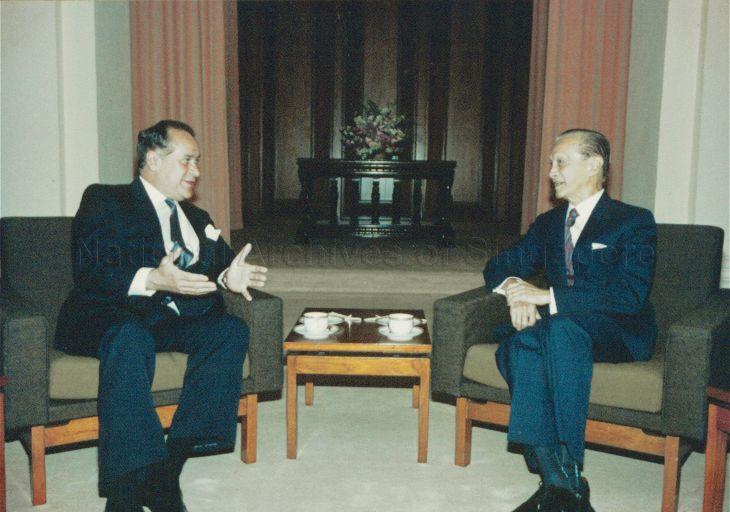MEXICAN AMBASSADOR-DESIGNATE MANUEL URIBE CASTANEDA (LEFT) PRESENTING CREDENTIALS TO PRESIDENT WEE KIM WEE AT THE ISTANA