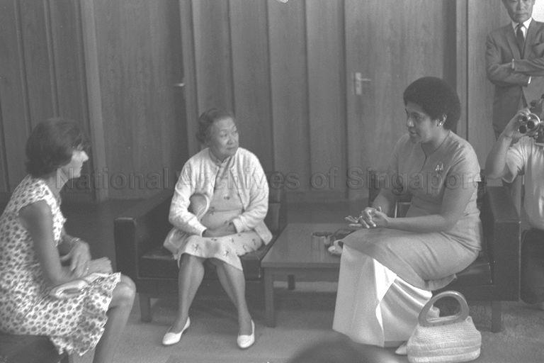 FIJI'S CHIEF MINISTER RATU KAMISESE KAPAIWAI TUIMACILAI MARA (NOT IN PICTURE) AND HIS WIFE RO LADY LALA MARA (RIGHT) ARRIVES AT SINGAPORE AIRPORT