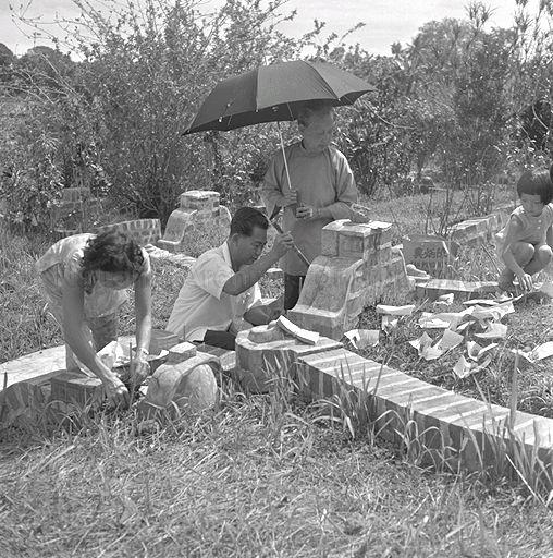 CHINESE PERFORMING RITES AT THE WHITLEY ROAD CEMETERY DURING THE QING MING FESTIVAL (TOMB SWEEPING DAY)