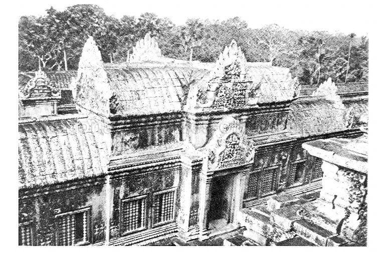 RUINS OF ANGKOR - ANGKOR-VATH, CENTRAL PART OF THE SOUTHERN GALLERIES ON THE SECOND FLOOR. VIEW TAKEN FROM THE BASE OF THE THIRD FLOOR, C1900S
