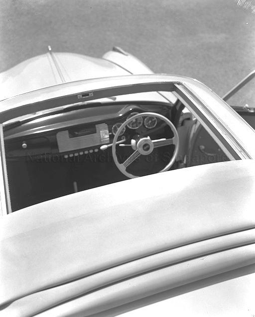 THE STEERING WHEEL AND DASHBOARD OF THE NEW GERMAN GOLIATH, A TWO-CYLINDER TWO-STROKE ENGINE CAR