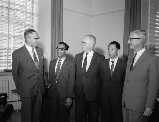 COLOMBO PLAN STUDENTS, SU KEE LAY AND RAJASINGAM, TELEPHONE COMMUNICATIONS OFFICERS FROM SINGAPORE, RECEIVED BY D DONALDSON, DIRECTOR GENERAL OF THE NEW ZEALAND POST OFFICE