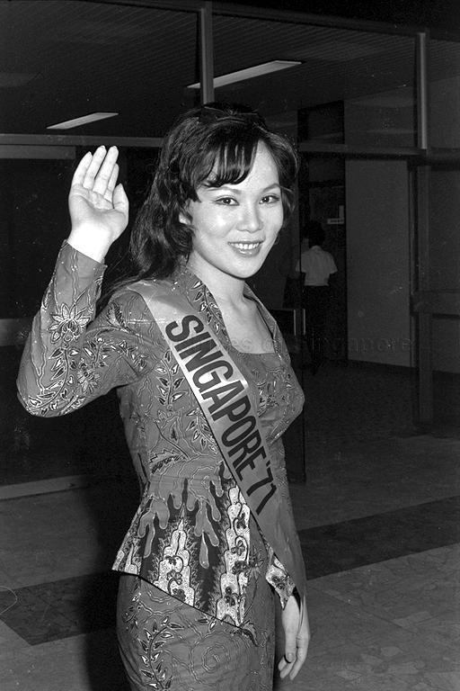 JENNY WONG, 22, LEAVING SINGAPORE TO PARTICIPATE IN THE MISS UNIVERSE CONTEST AT MIAMI BEACH IN THE UNITED STATES