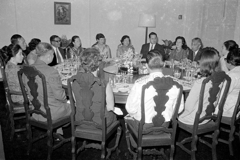 PRESIDENT YUSOF ISHAK AND FIRST LADY PUAN NOOR AISHAH WITH GUESTS DURING AN OFFICIAL EVENT AT ISTANA, LATE 1960S